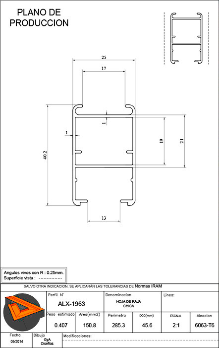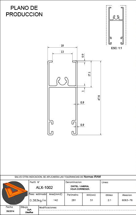 DINTEL / UMBRAL HOJA CORREDIZA |