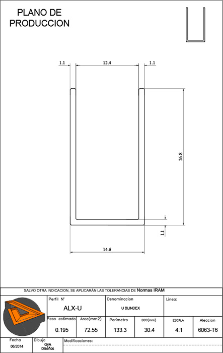 PERFIL U BLINDEX |